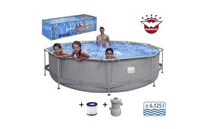 Stahlrahmen-Pool grau, BxLxH: 274 x 549 x 122 cm, leichter Auf- und Abbau, ohne zusätzliches Werkzeug korrosionsgeschützter Stahlrahmen inkl. Filterpumpe, Abdeckplane, Unterlegplane, Filter & Leiter