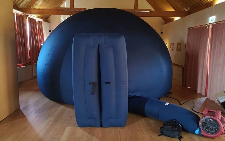 Das mobile Planetarium hat einen Durchmesser von 5 Metern und bietet Platz für bis zu 30 Kinder. Für einen halben Tag (4 Unterrichtseinheiten) kommt das mobile Planetarium an ihre Schule.