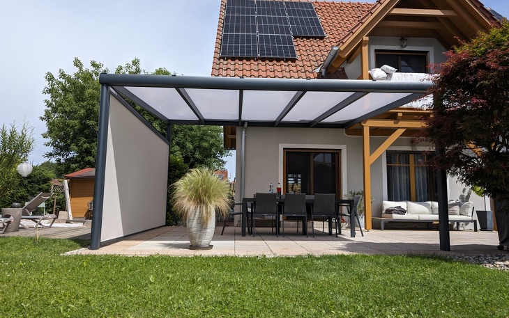 Mit wenig Aufwand lassen sich die Terrassenüberdachungen von sunseater® um praktische Extras wie LED-Lichtern, Markisen oder Seitenverglasungen erweitern.